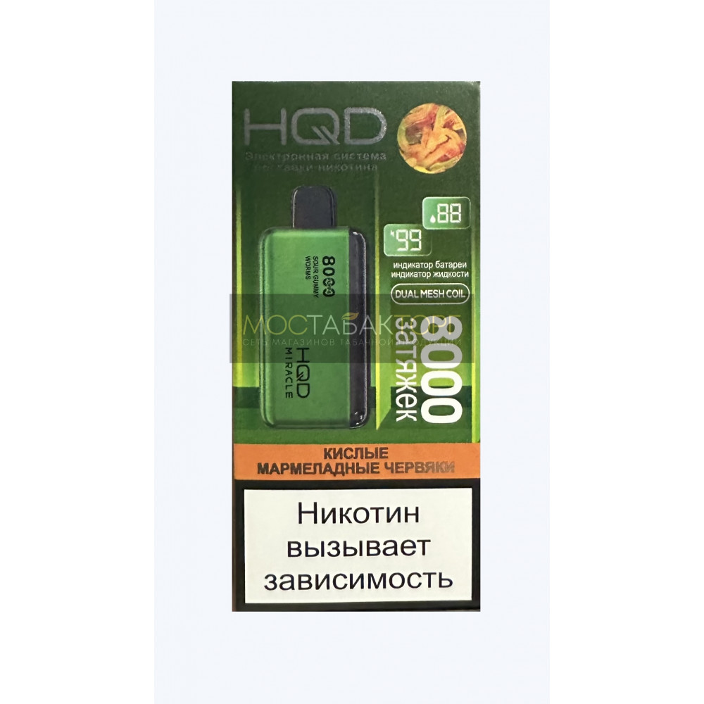 Технические характеристики HQD Miracle Sour Gummy Worms (Ашкуди Миракл Кислые Мармеладные Червячки)